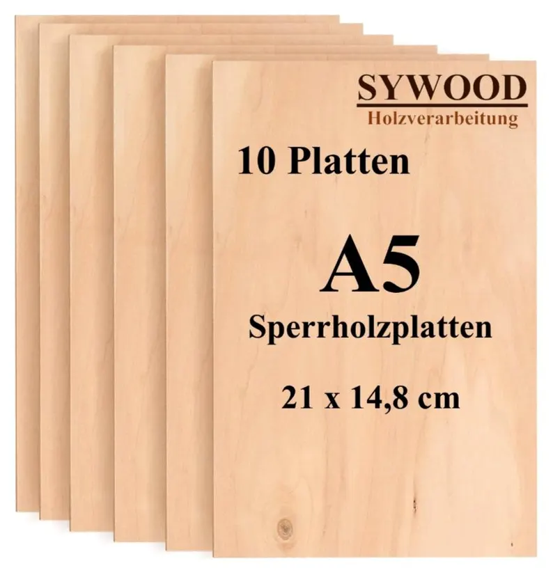 10x DIN A5 Sperrholz Birkenholz Platten | 210x148mm | Materialstärke 6mm