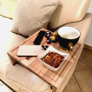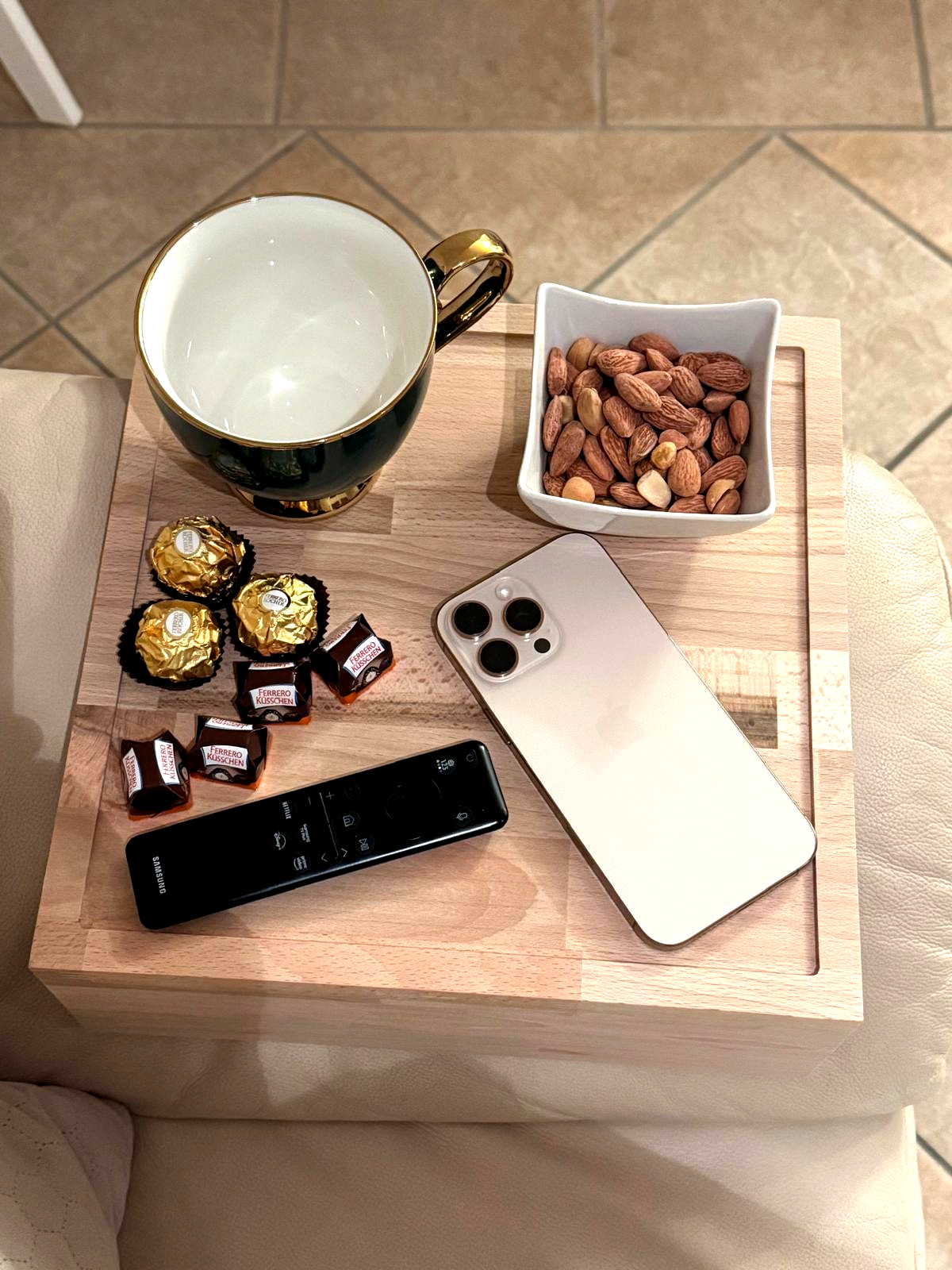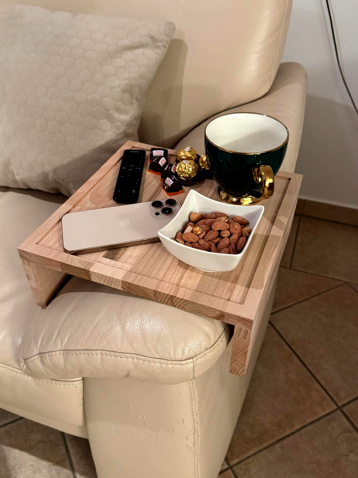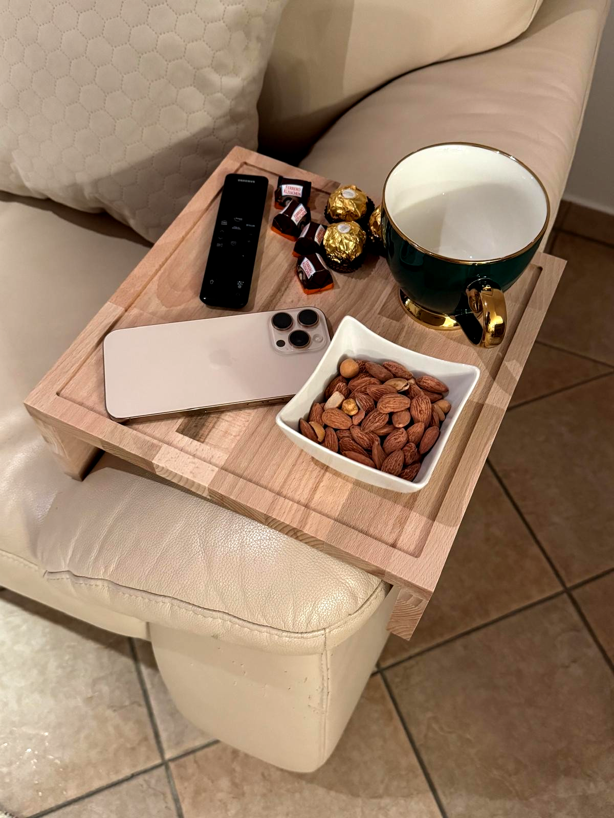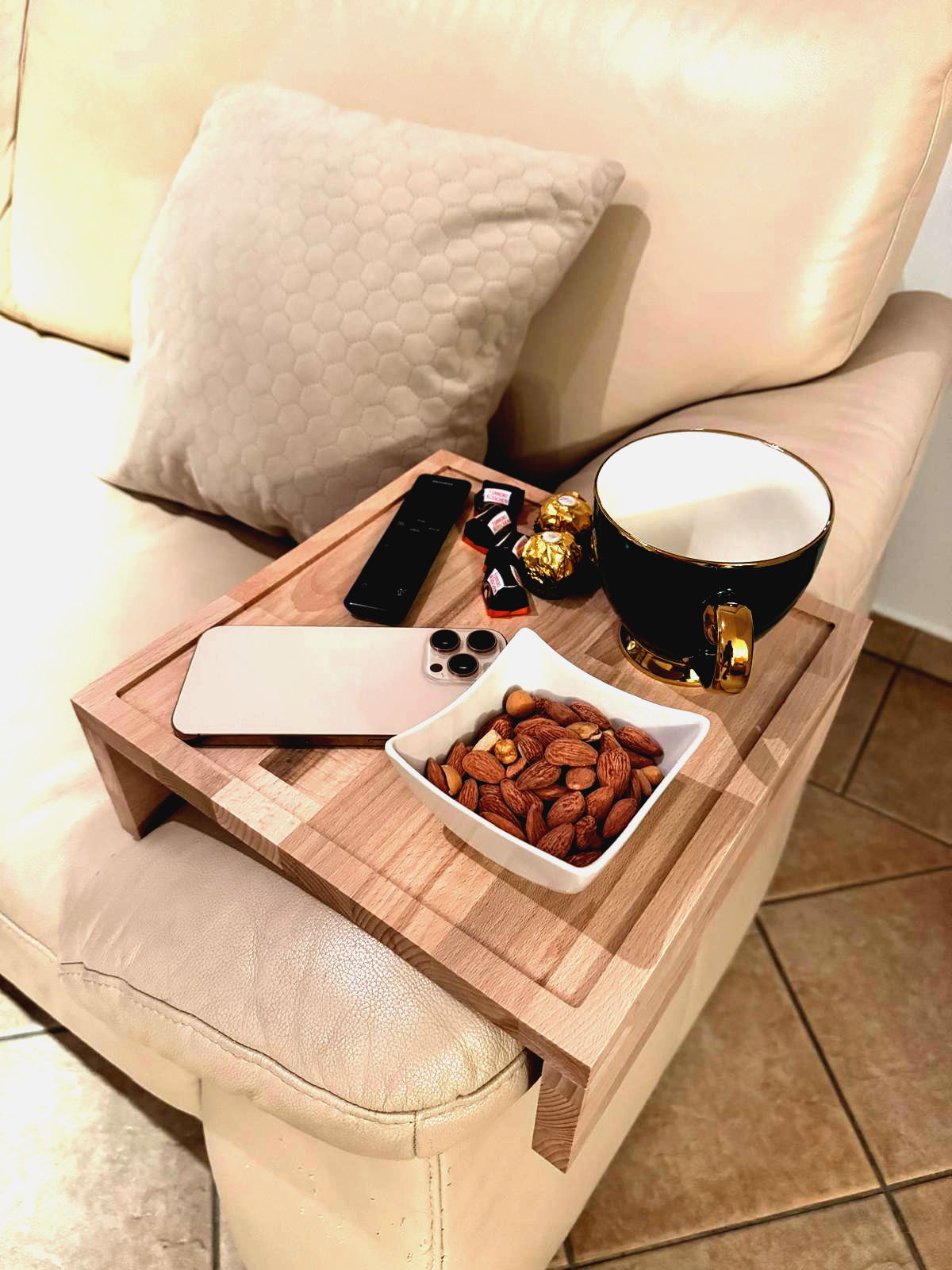 Genieße gemütliche Tage auf der Couch mit unserem exklusiven Couch-Butler, dem Must-Have für perfekte Fernsehabende. Schluss mit verschütteten Getränken und chaotischen Couchtischen – der Couch-Butler schafft Ordnung und Stil in deinem Wohnzimmer.