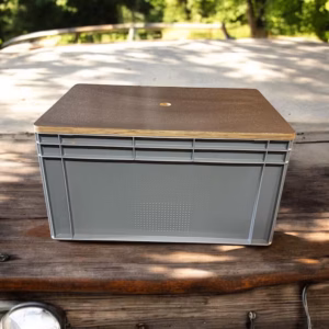 Euroboxdeckel aus 15mm witterungsbeständigen Siebdruck. Ideal für Camping, Tisch, Trittleiter uvm. Dank der perfekt gefrästen Innenseite, kann der Deckel nicht verrutschen und passt perfekt auf die Eurobox. Der Deckel wurde in der Mitte mit einem Griffloch versehen.