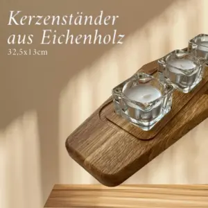 Teelichthalter Eichenholz, Kerzenständer Vintage Teelichtgläser Set 32,5x13cm