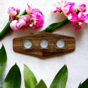 7 teiliges Teelichterset – Eichenholz geölt mit 3 Teelichterhaltern und Kerzen
